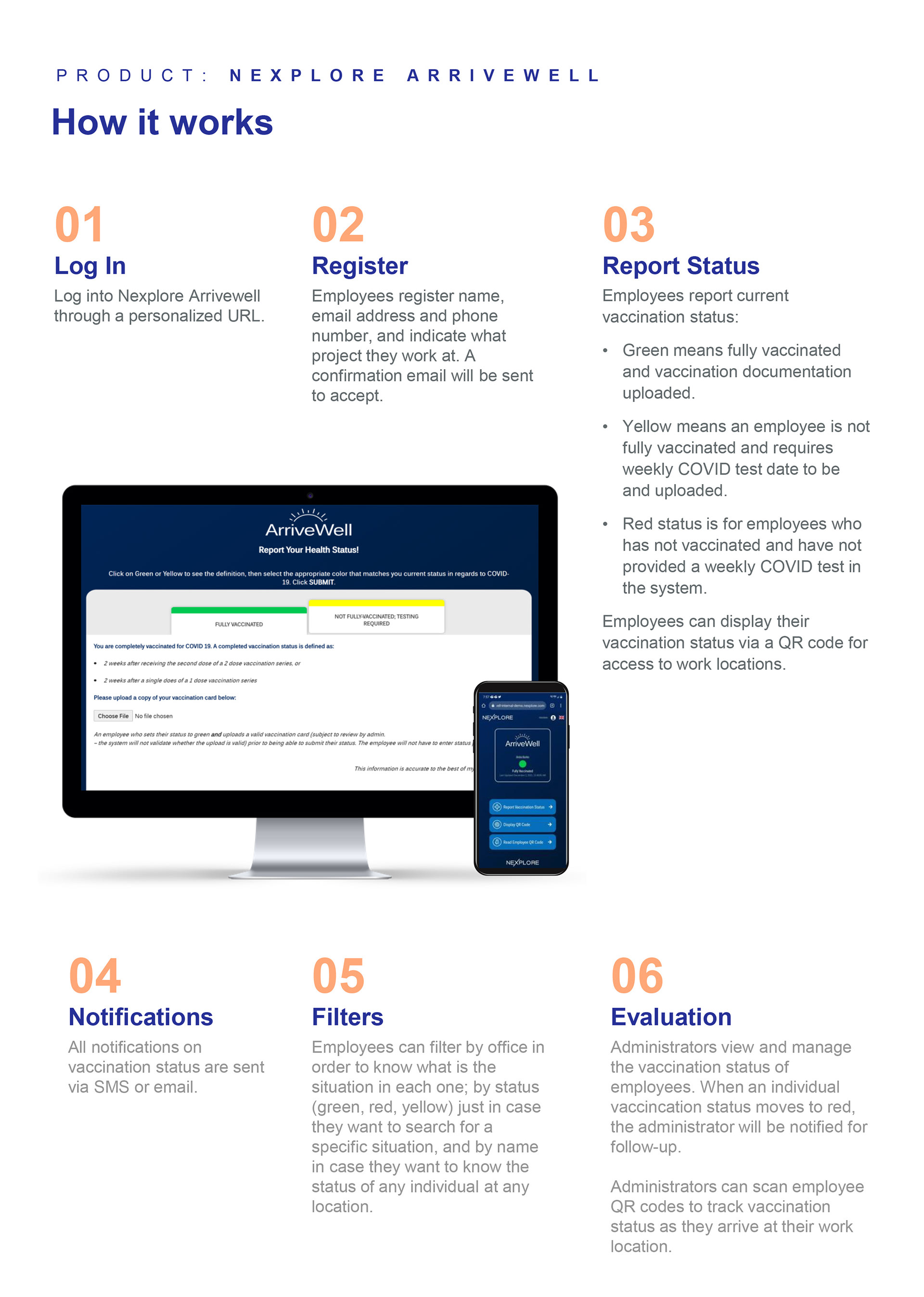 Nexplore Arrivewell is the web-based application for companies to manage the vaccination status of employees.